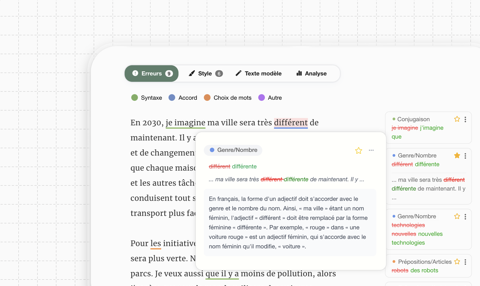 Pour un magazine local, imaginez comment sera votre ville en 2030. Écrivez un article décrivant les changements que vous souhaiteriez voir : avancées technologiques, initiatives écologiques ou aspects culturels.